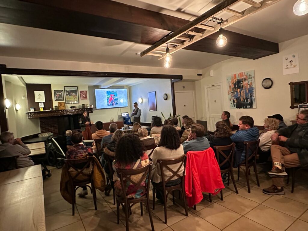Le 26 mars, Romain et Justine sont venus témoigner à propos de leurs aventures lors d’une soirée-rencontre suivie d’une dédicace de leur ouvrage, au bar-restaurant Chez Pitxe. Cette rencontre a été l’occasion d’aborder différents thèmes tels que l’aventure, la parentalité en itinérance, la richesse des territoires ruraux, la solidarité, ou encore le voyage comme expérience de transformation.