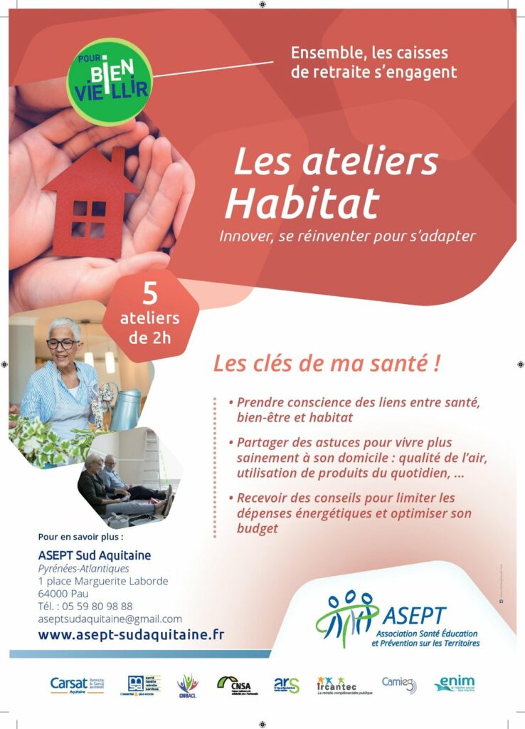 En partenariat avec l’ASEPT, Elkarbidea propose aux personnes de plus de 55 ans des ateliers Habitat. Les ateliers « Habitat, les clés de ma santé » : une pédagogie interactive et ludique pour améliorer votre qualité de vie à domicile ! Le contenu de cet atelier : Votre expérience, des conseils pratiques et des exercices, […]