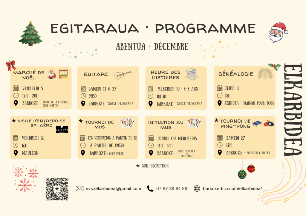 - Les ateliers « Euskara » se déroulent les vendredis soirs à 18h30 à la salle de l’école de Barcus.
