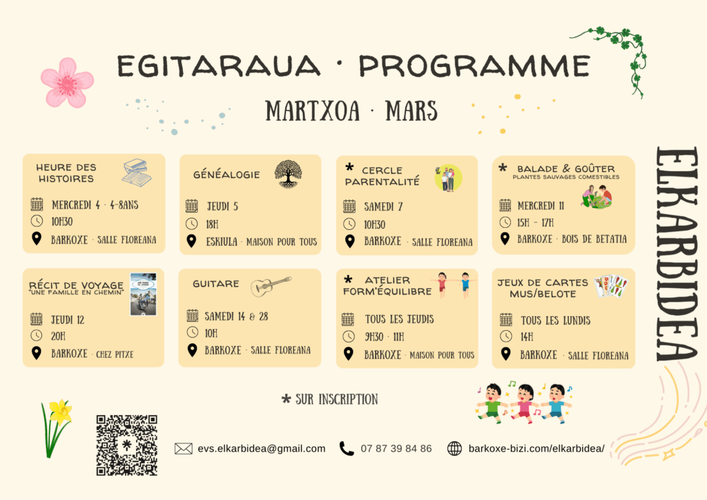 Inscrivez-vous à la newsletter en envoyant un mail à evs.elkarbidea@gmail.com ou bien en scannant le QR code ci-dessous « Inscriptions Berriak – Elkarbidea »