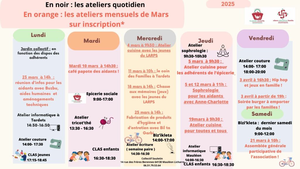 L’Espace de Vie Sociale de Mauléon propose de nombreux services et activités :