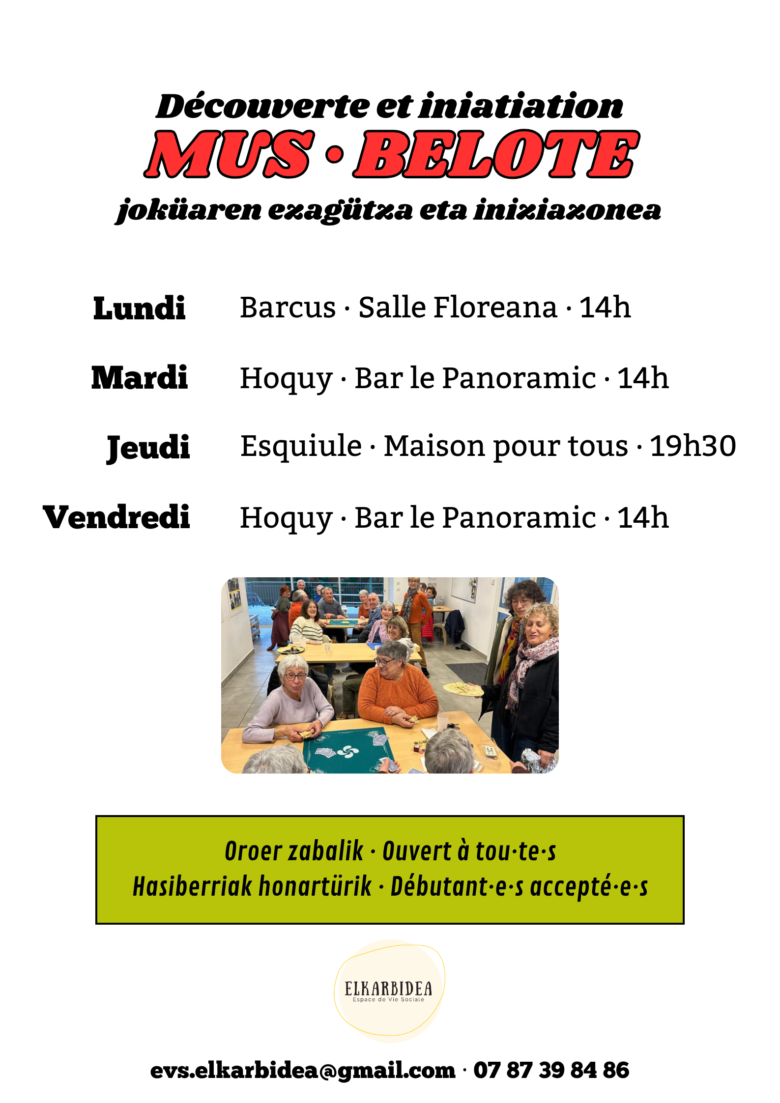 - Les ateliers « Euskara » se déroulent les vendredis soirs à 18h30 à la salle de l’école de Barcus.