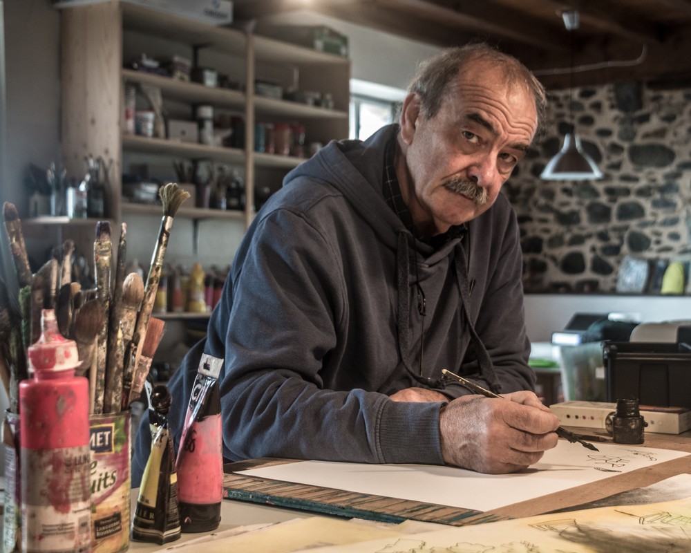 Gonzalo Etxebarria Gonzalo Etxebarria est un artiste peintre installé en Soule, résident à Barcus. Il a d’abord étudié l’architecture à Madrid avant de se passionner pour la peinture sous l’égide de Jorge Oteiza à l’école d’art de Deba. Aujourd’hui, il explore et partage les différents horizons de la création dans l’atelier Uztaro à Menditte.
