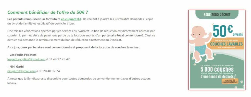Pour vous aider à franchir le pas sans vous ruiner, une aide financière de 50 € est offerte pour la location de couches lavables. C’est l’occasion idéale de tester ce mode de change durable avant d’investir.