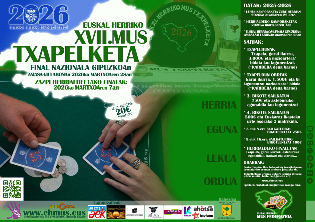 Cette année, Elkarbidea organise le tournoi de Mus du Pays-Basque au bar Le Panoramic à Hoquy le vendredi 23 janvier à partir de 19h. Boissons et petite restauration sur place.