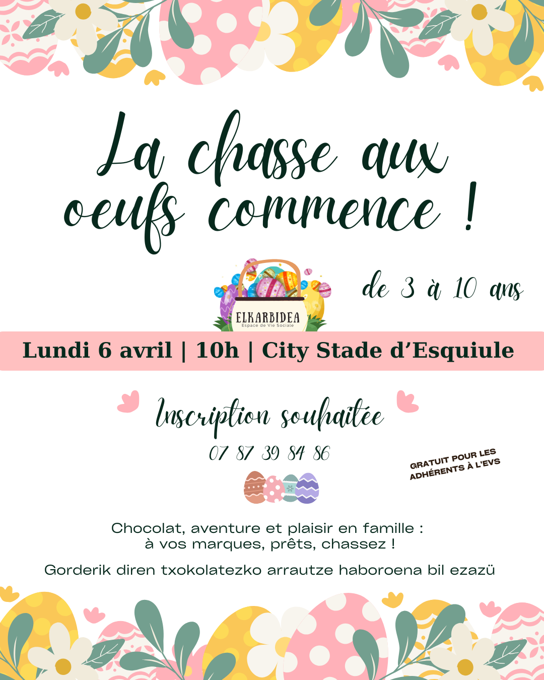 Pazkoko arrautze ihizi handiaApirilaren 6an astelehenarekin, hitzordüa Eskiulako City zelaian...