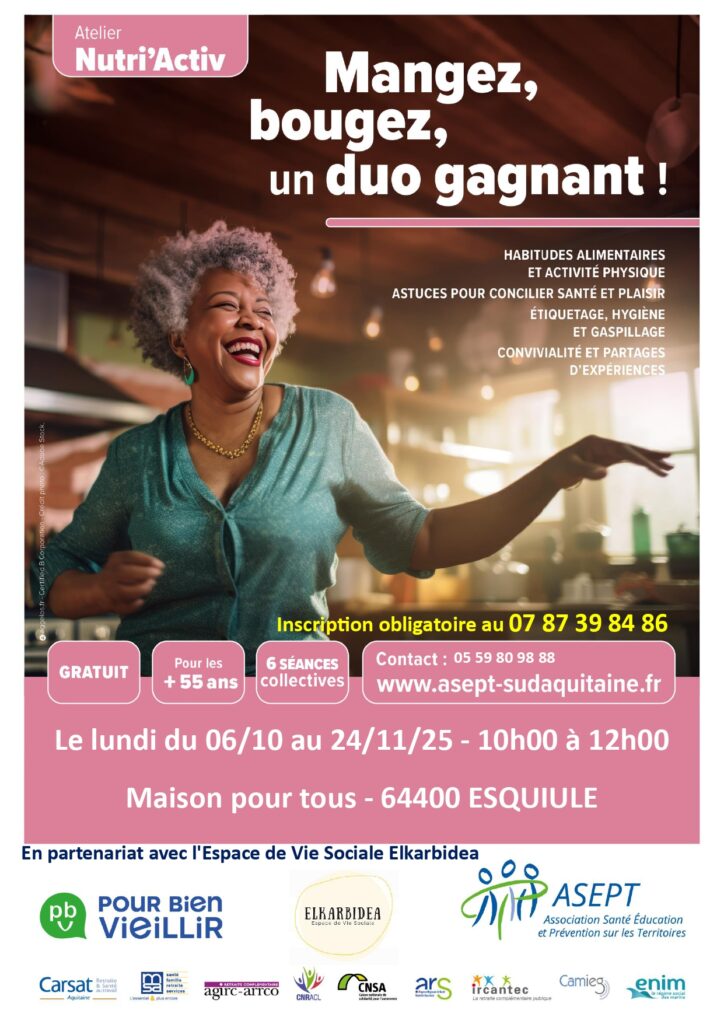L’Association de Santé, d’Éducation et de Prévention sur les Territoires Sud Aquitaine œuvre à la prévention santé des seniors de plus de 55 ans pour le compte des régimes de retraite.L’ASEPT informe, sensibilise et aide les seniors à adopter des comportements sains au quotidien en faveur d’un vieillissement actif et réussi. Des conférences et des ateliers, adaptés aux seniors et entièrement gratuites sont