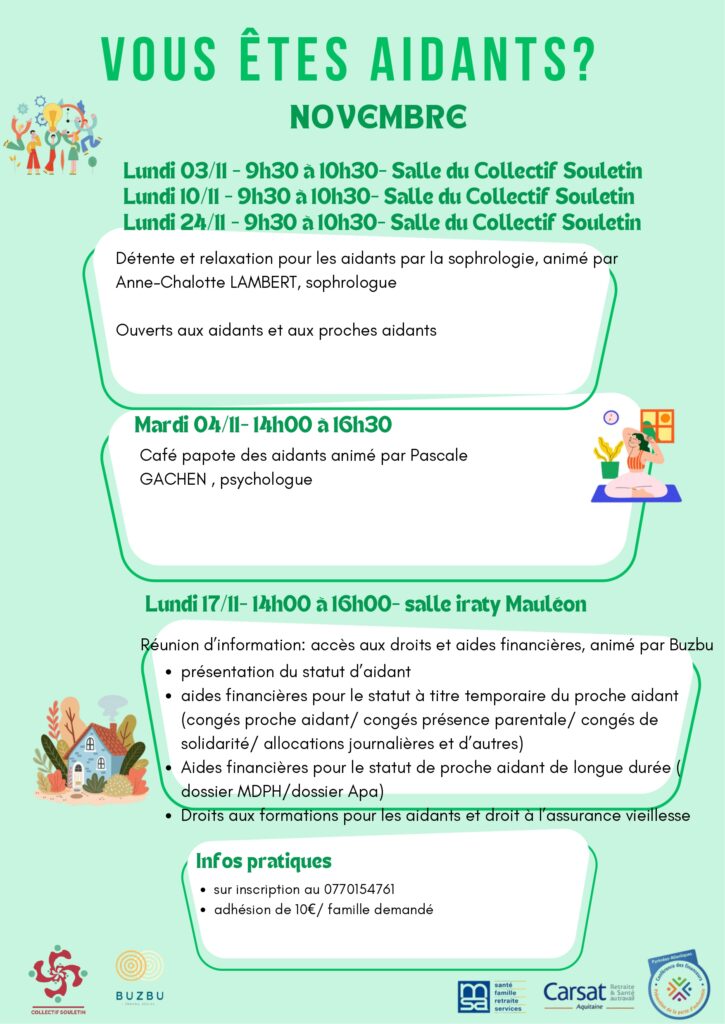 - Atelier NutriActiv les lundis matins de 10h à 12h à la maison pour tous d’Esquiule : 6/10 – 13/10 – 3/11 – 10/11 – 17/11 – 24/11 .